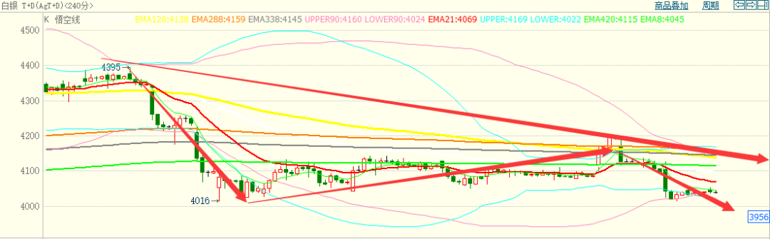 从4小时图表观察来看,白银TD反弹力度较弱,受上方均线压制明显,易跌难涨。白银压力:16.8(4080),支撑:16.3(3970)。