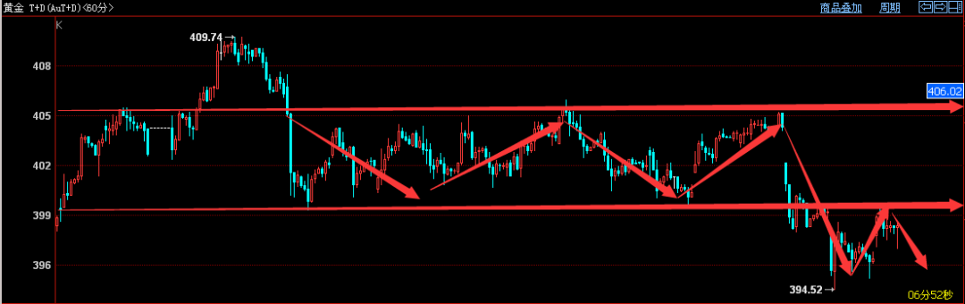 从1小时图表观察来看,黄金TD跌破400整数关口,目前再次反弹此区域,需关注附近压力。若未能突破,证明阻力有效,金价恐迎来二次下行。黄金压力:1890(401),支撑:1860(396)。