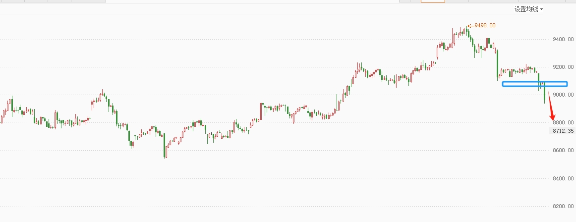 白银TD下破横盘区间,继续大幅杀跌,短期多空分界点移至9100继续看跌。白银压力:37.50(9090),支撑:36.30(8850)。