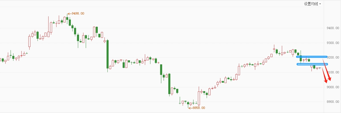 白银TD分时形成新的下跌结构,短线仍有可能进一步向下寻求支撑,以9200为短期多空分界点继续看跌。白银压力:37.80,38.00(9150,9200),支撑:37.30,37.00(9050,9000)。