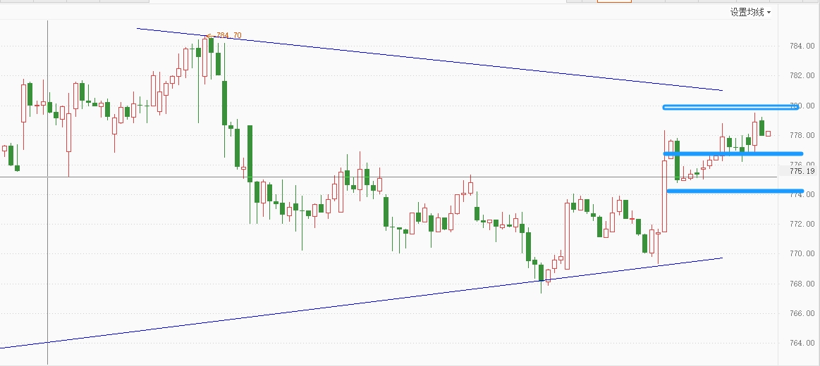 国际黄金日线收带下影光头阳线,分时上涨结构完好,将再度挑战3400关口,短期多空分界点移至3365一线,临近区间顶部区域,建议观望,等待可能出现的高空信号。黄金压力: 3400(780),支撑:3365,3350(776,774)。