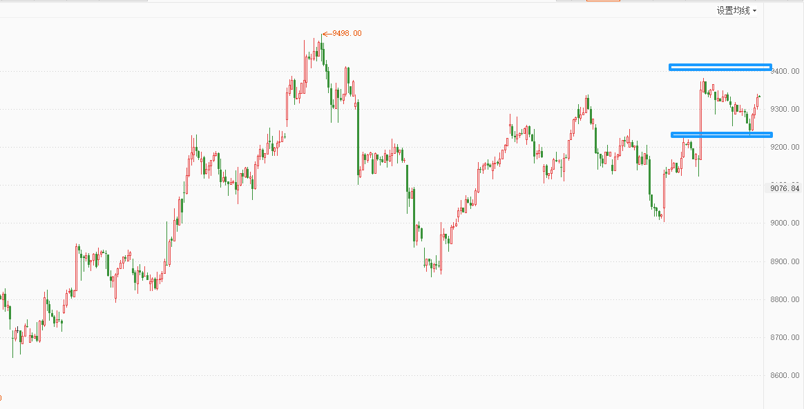 白银TD在9230附近寻得支撑反弹,各周期上涨结构完好,短线还有冲高动能,整体预计还是震荡居多。白银压力:39.10(9380,9420),支撑:38.20(9280,9220)。