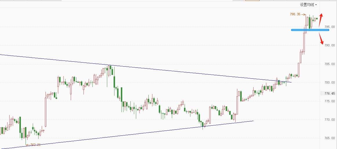 白银TD持续拉升,涨势趋缓,关注分时结构的转化,短线上涨空间有限,有可能出现技术调整。白银压力:40.95,41.70(9886),支撑:40.00(9750,9700)。