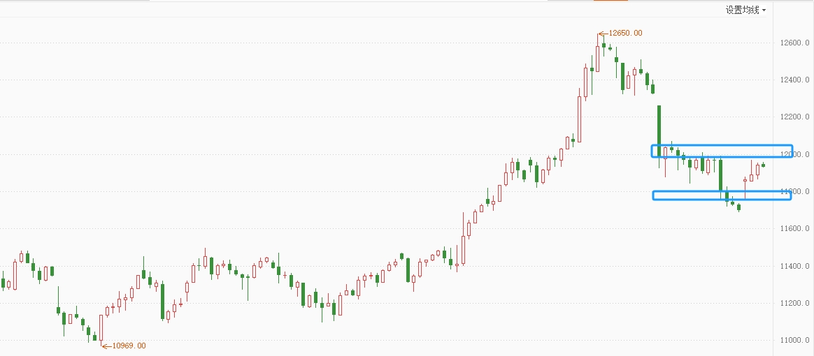 白银TD分时呈现V型底,暂以调整途中的反弹对待,短期预计震荡整理,激进的可高抛低吸,保守观望。白银压力: 51.40(12100),支撑:49.80-50(11800)。