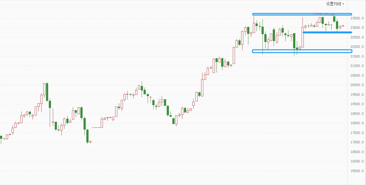 白银TD高位窄幅震荡,整体上涨结构完好,关注震荡区间突破,短期多空分界点维持在91(22300)继续看涨。白银压力:95.88,98.80(23700,24800),支撑:93.40,91.00(22750,22300)。