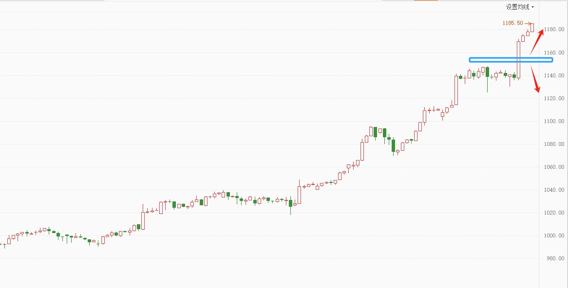 国际黄金日线高位收光头光脚大阳线, 整体仍处于加速上涨当中,周一成为上涨途中当日调整,以5176(1150)为短期多空分界点继续看涨。黄金压力:???,支撑:5220,5176(1168,1150)。