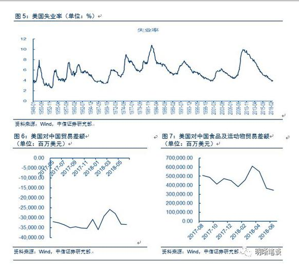 国际贸易争端不断,外部经济环境较为严峻。国际贸易方面,目前北美贸易谈判尚未完成,但已接近尾声,美国与墨西哥已就修订协议初步达成一致,但加拿大方尚未表态。《美墨贸易协定》收紧了墨西哥对美汽车出口规定并保持了农产品零关税贸易,但考虑到北美贸易达成一致作为“双赢”格局,对两国均是利好消息。虽然目前加拿大尚未表态,比索和加元对美元汇率上行已在一定程度上反映了人们对此持有乐观情绪。但是,中美贸易战自今年三月打响后,美国对中国贸易逆差有一定程度回升,但近来逆差不断扩大。其中,中国作为美国的第二大农产品出口国,中方对美国农业采取反制裁措施使得美国对中国的食品及活动物的出口金额甚至低于贸易战前,给美国的经济带来较大的下行压力。国际资本流动方面,今年三月以来,不断走软的美元指数给国际资本的流入带来一定压力。