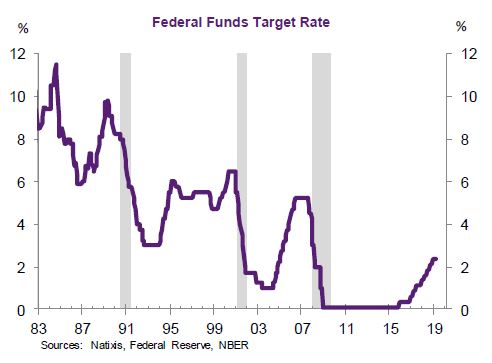 目前的经济周期里,美联储在金融危机期间将联邦基金目标利率降至零后,从2015年12月开始加息至今。