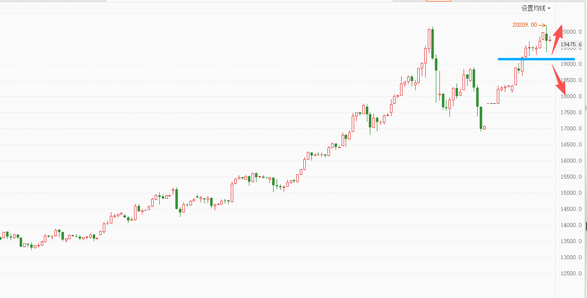 白银TD短暂新高后回落,各周期上涨结构完好,短期多空分几点移至19100谨慎看涨。白银压力:82.70(20000,20209),支撑:77.70(19100)。