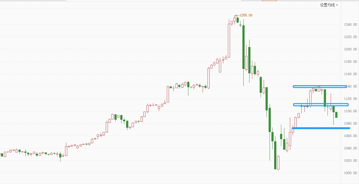 国际黄金日线收红十字星,在5100附近受阻,表现震荡,反弹并未结束,预计还是震荡。黄金压力:5000,5100(1140,1160),支撑:4750(1073)。