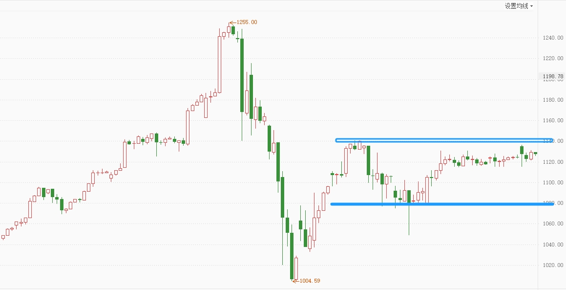 国际黄金日线收小阳线,短时突破5100后回落,维持震荡,关注5100-5000震荡区间突破,整体预计还是宽幅震荡。黄金压力:5100(1140),支撑:5000-4960,4800(1115,1080)。