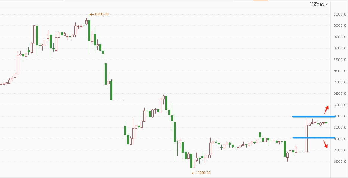 白银TD反弹高位窄幅横盘,显强势,短线依然有冲高动能,短期预计维持反弹态势。白银压力:89.00,92.00(22000),支撑:84.00(21000,20000)。
