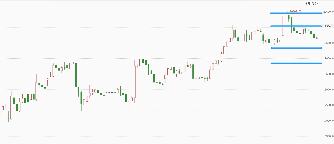白银TD持续回落,完全回吐分时大阳线涨幅,并击穿短期多空分界点19730,重心下移, 20000一线压力明显,但各周期上涨结构完好,短线仍有可能反复,警惕行情反转,激进的可尝试20000一带做空,破位止损。白银压力: 80.00(20000),支撑: 78.00(19350,18900)。