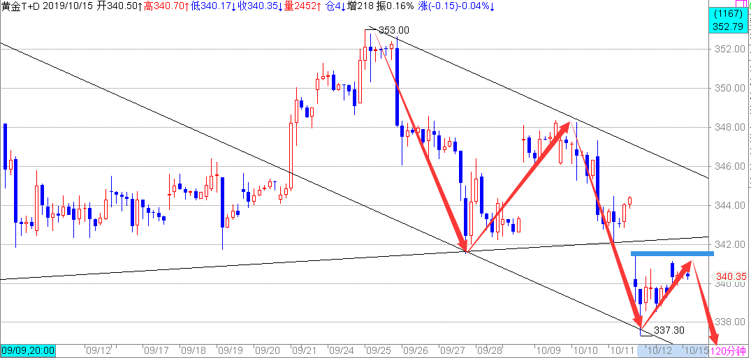 周一(10月14日)美国部分市场休市,消息面平静,市场情绪趋向温和,市场波动不大,美元、黄金小幅修正反弹。隔夜黄金TD收盘报340.65,白银TD报4303。