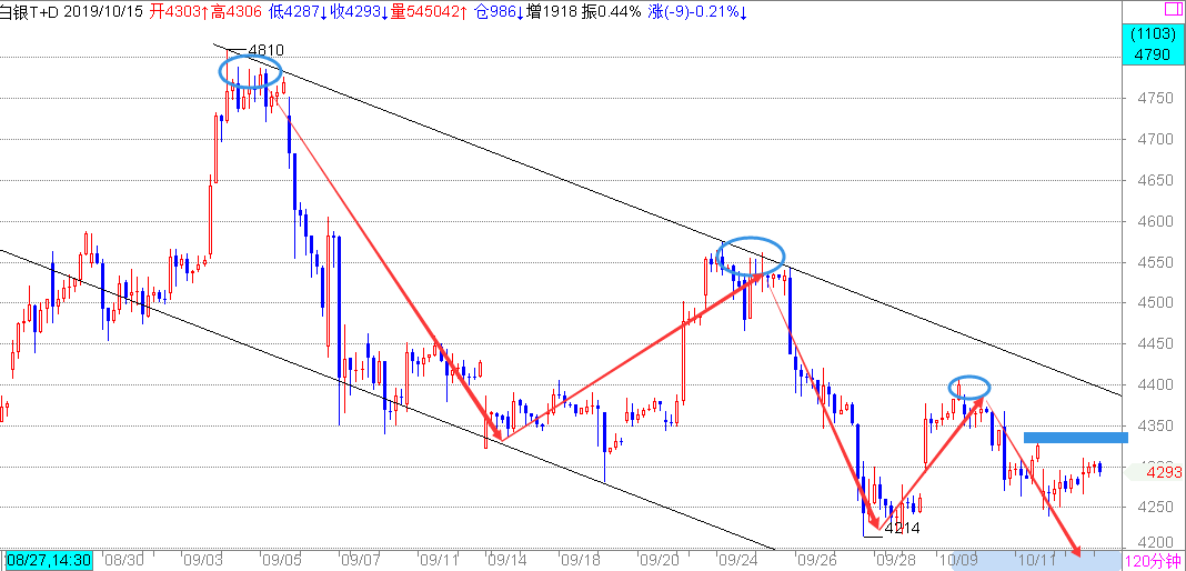 白银保持空头结构,银价运行于下跌通道中,关注4200一带支撑,短线逢高空。白银压力:17.80(4350),支撑:17.20(4220)。