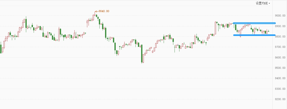 白银TD维持区间8800-8950区间波动,关注区间突破,震荡时间过长,突破可积极跟进。白银压力:36.70(8940),支撑:35.80(8800)。