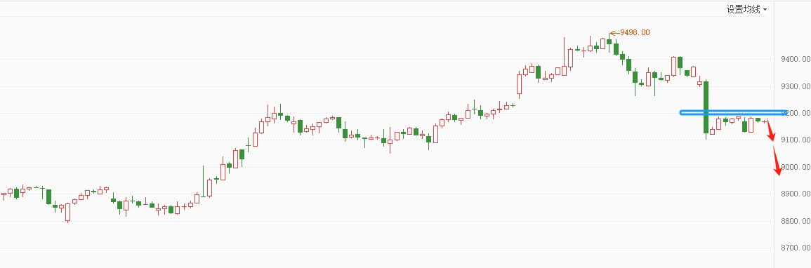 白银TD大幅下跌后低位窄幅横盘,显弱势,跌势明显,维持做空策略。白银压力:38.40(9200),支撑:37.50(9050,8960)。