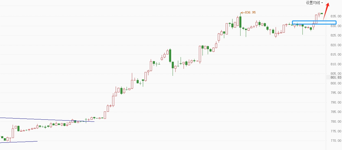 国际黄金日线高位收带下影中阳线,并创新高,各周期上涨结构完好,多空分界点移至3645(830)继续看涨。黄金压力:3720(842),支撑:3675,3660(830)。