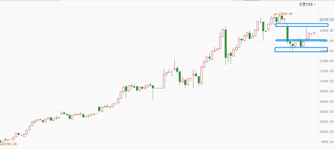 白银TD回调低点上方震荡,表现弱于黄金,继续关注震荡区间突破,有望展开进一步的调整,维持高空策略,新高严格止损。白银压力:52.80-53(12100,12300),支撑:51.30,50.60(11850,11650)。