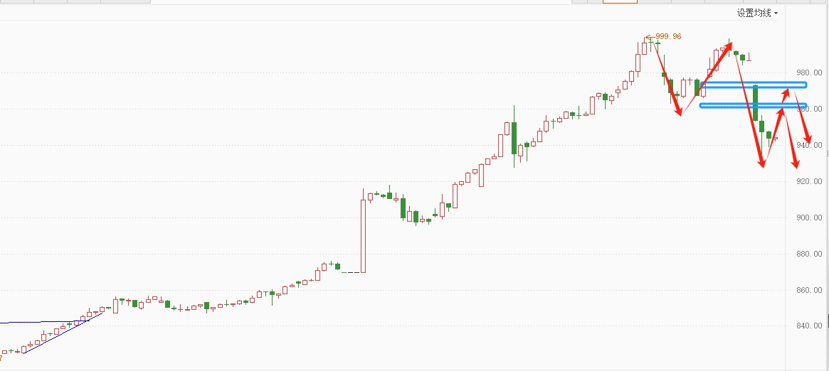 国际黄金日线收超大阴线,分时形成新的下跌结构,日线级别的头部基本确定,但短期跌幅过大,有技术性反弹的需求,关注4000(926)关口支撑及分时结构的转化,等待反弹后的高空机会。黄金压力:4120,4200(960,972),支撑:4000,3950(930,926)。
