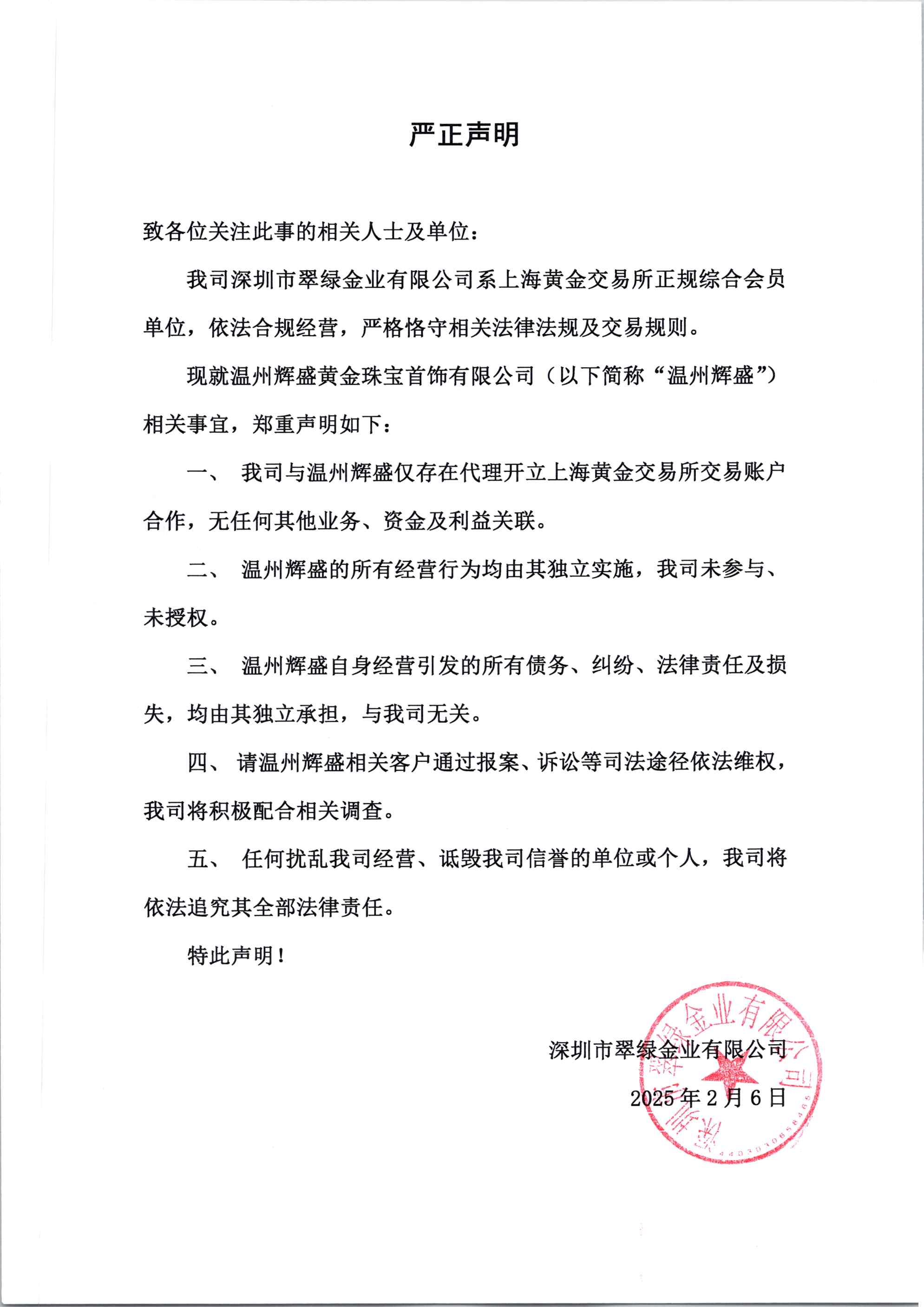 严正声明