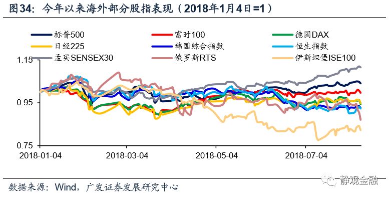 今年以来,土耳其里拉兑美元贬值38.9%、伊斯坦堡ISE指数重挫17.7%、土耳其10年期国债收益率上浮742BP;仅8月其汇率贬值幅度就超过8%、股市下挫2.1%、10年期国债收益率上浮近100BP。此外,俄罗斯8月也出现了股债汇同时下挫。市场重燃了对于新兴经济体的担忧。