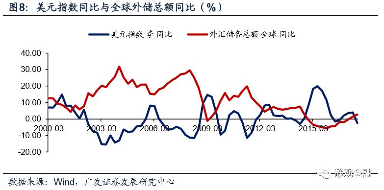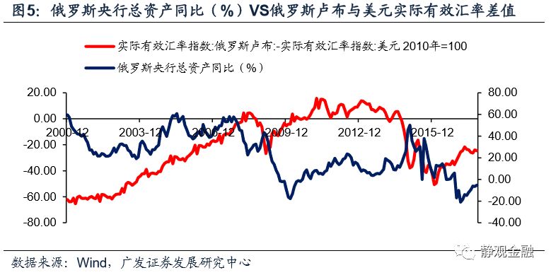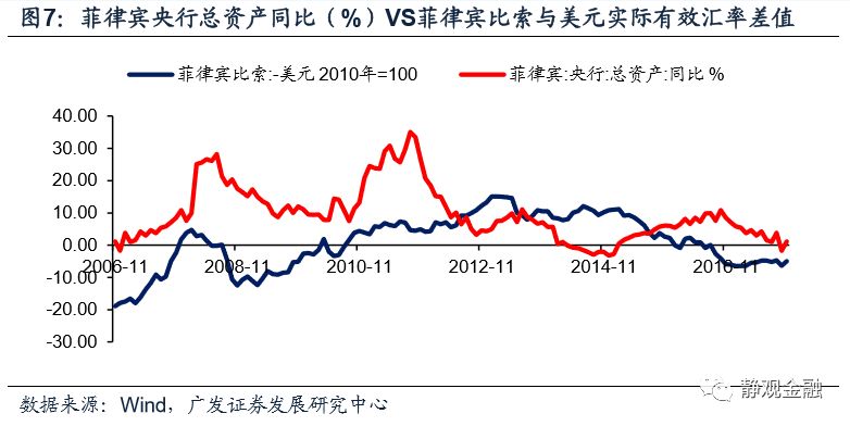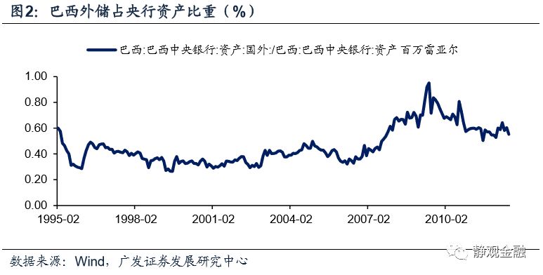 巴西、俄罗斯和菲律宾外储占各自央行资产比重中枢分别在60%、85%和70%附近,大致表明外储是EM货币投放的主要来源。强美元周期下,EM外储流失风险极高,内部基础货币投放减少、流动性被动收紧;弱美元周期下,EM往往对应外储回升,内部基础货币投放增加、流动性相对宽松。