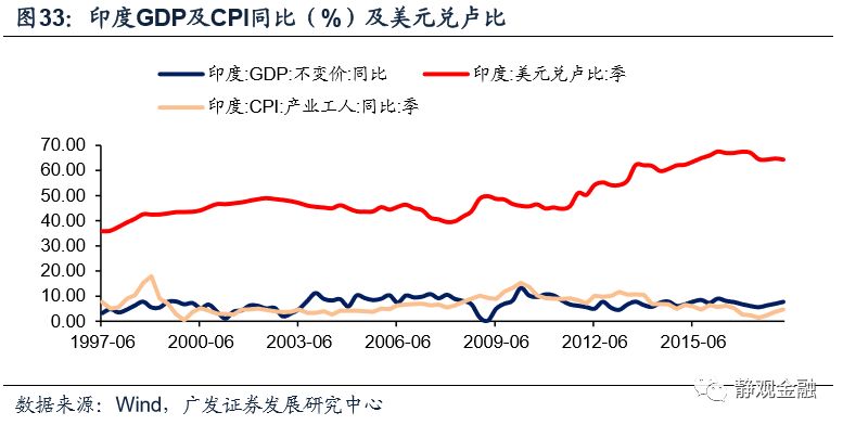 由前文,我们看到新兴经济体出现危机基本上有两条重要线索:一是在危机前,新兴经济体往往出现经济过热和大量资本净流入,导致对外依赖度过高,一旦汇率出现贬值,经济逻辑逆转则爆发系统性风险;二是在危机过程中汇率既是导火索也是结果,但新兴危机爆发前后相关经济体总会出现严重滞胀(恶性通胀叠加GDP失速下行)。