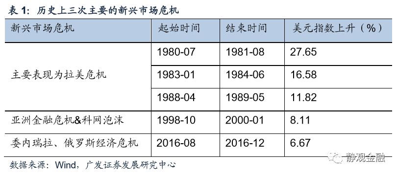 导读:上世纪70年代以来,新兴市场(EM)出现过3次大规模汇率贬值——上世纪80年代;上世纪90年代末;2015-2016年。且此前每一轮新兴市场货币贬值都对应着强美元背景,并最终导致部分新兴经济体出现严重滞胀,酿成经济及金融危机。