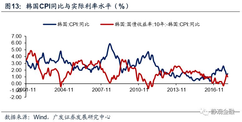对于生产型新兴市场而言。生产型EM包括韩国、中国等。以韩国为例,强美元背景压低了资源品价格,生产国出现低输入通胀,但货币政策往往相对经济增长和通胀滞后,因此强美元往往导致生产国处于通胀下行、实际利率回升的状态,私人部门投资意愿偏弱。相反,弱美元环境,生产国通胀回升、实际利率回落,私人部门投资意愿增强。