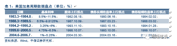 加息指一个国家或地区的中央银行提高基准利率的行为,有利于抑制通胀和消费等,并为下一次救市腾出一定降息空间。纵观美联储历史上共出现5次加息周期,分别出现在1983年、1988年、1994年、1999年以及2004年。五次加息周期的情况各有不同:
