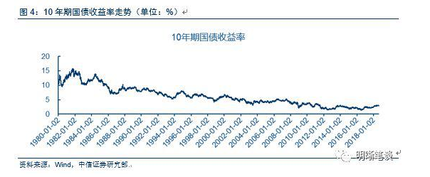 目前,美国国内外经济环境较为复杂,一方面美国主导的贸易战覆盖范围较广且尚未取得各方明显表态,走弱的美元指数加剧了美国国贸危机。另一方面,近期商务部公布的数据显示,美国失业率处于历史低位而通胀率已触及美联储所设置的目标。目前美国经济总体呈稳定增长态势。前五次加息周期结束后,美国股市并未有大幅下行,但债市收益率都有所回落。在我国对美贸易顺差逐渐回复至贸易战前、美元指数不断走弱的背景下,我们认为美国本轮加息周期进入尾声,有助于缓解人民币汇率和中美利差带来的压力,为国内的货币宽松打开空间。因此在国内需求不足,货币宽松不变的背景下,我们认为10年期国债收益率存在下行动力,将回到我们的区间下限3.4%左右的水平。