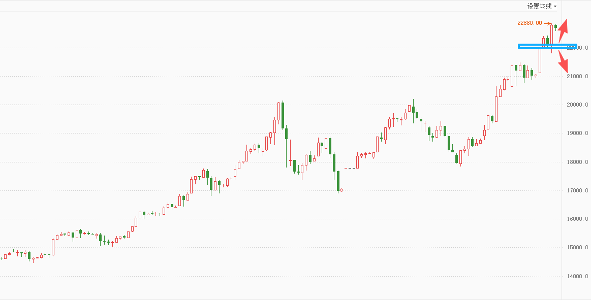 白银TD再创新高,上涨势头完好,短期多空分几点移至22100继续看涨。白银压力:90.00,92.00(23300),支撑:74.00(22100)。