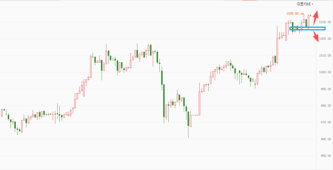 国际黄金日线高位收小阴十字,分时呈现小区间横盘,日线上涨结构完好,以4520(1025)为短期多空分界点继续看涨。黄金压力:4680(1035,1045),支撑:4570,4520(1025)。