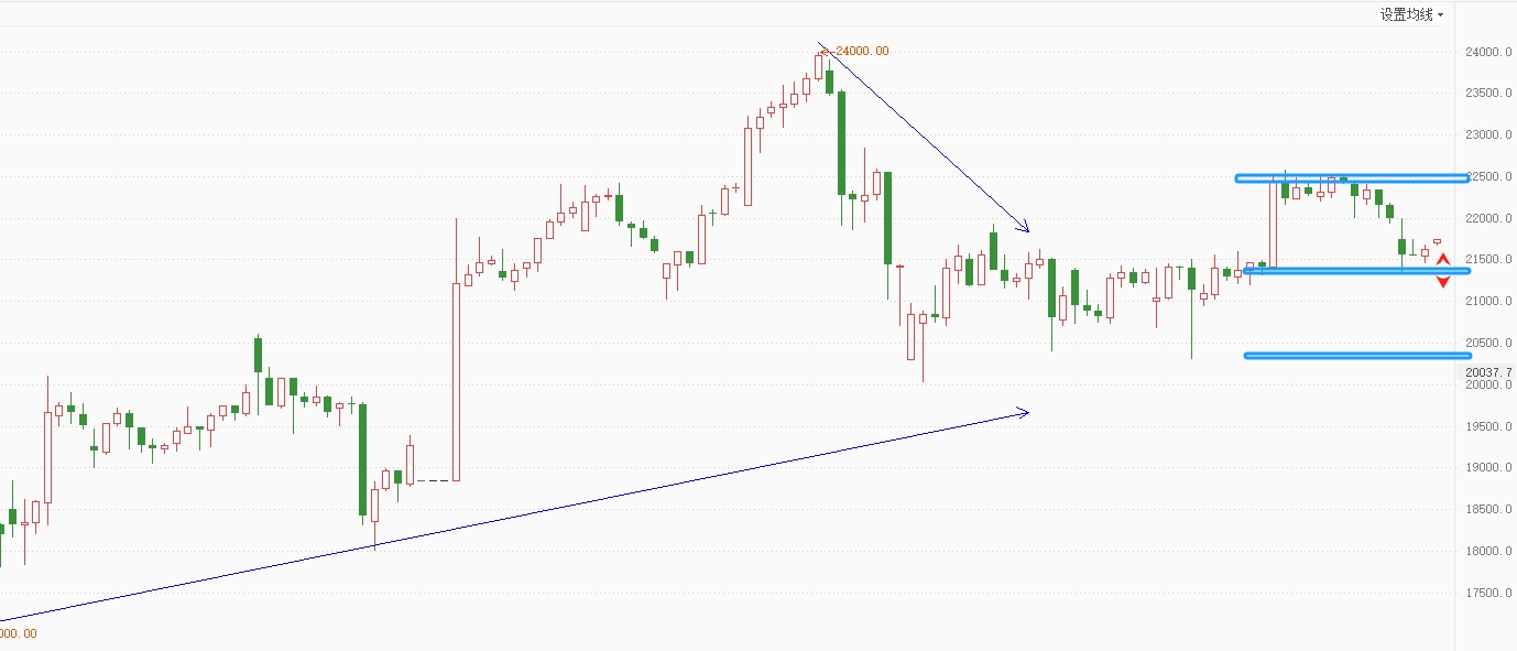 白银TD回吐周二上午全部涨幅,分时形成新的下跌结构,显弱势,整体仍是区间波动。白银压力:90.20(22700),支撑:83.20,80.00(21400,20400)。